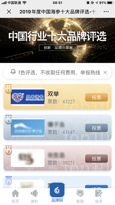 據(jù)杜建紅介紹,在投票直選活動開始后十多天,有客戶訂購海參時無意中說出,他們方才知道雙舉海參已經(jīng)“被參加”且一直占據(jù)“中國行業(yè)十大品牌評選”榜首位置。“事先并沒有任何部門告知我們這件事,估計是因為品牌影響力較大而通過網(wǎng)絡(luò)自動收取的,隨即得到雙舉粉絲們的鼎力支持和積極參與帶來的結(jié)果。”她說,通過這件事,讓雙舉海參全體員工都深感振奮,畢竟這至少說明雙舉海參得到了全國各地廣大雙舉粉絲的認(rèn)可和肯定。